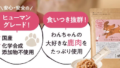 そのほかに気になる点を挙げるとすれば、動物性原材料の割合までは記載されておらず、割合が明記されているドッグフードと原材料の内容を比較しづらいことくらいです。